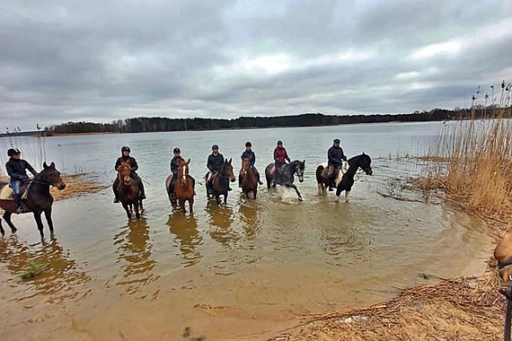 Natomiast dla grupy 3 jeźdźców (i więcej) istnieje możliwość zorganizowania wyjazdu w teren lub dodatkowej jazdy treningowej we wczesnych godzinach popołudniowych (poza poniedziałkiem, który pozostaje "Dniem Konia"). Zachęcamy, jeśli ktoś dysponuje czasem, do umawiania na jazdy w okolicy godzin 15:00-16:00. Jest zdecydowanie przyjemniej w terenie gdy słońce świeci wysoko :)